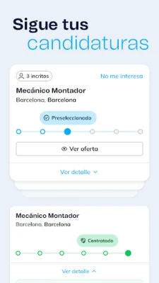 Una vez que inicies tu búsqueda, la plataforma Eurofirms te acompaña en cada paso. Completa y perfecciona tu perfil profesional con tu información personal, tus conocimientos, experiencia y preferencias laborales para destacar entre los candidatos. Además, podrás hacer un seguimiento detallado del estado de todas tus candidaturas y gestionar eficientemente tu proceso de contratación. Y para quienes ya forman parte de la familia Eurofirms, la aplicación ofrece un acceso exclusivo y directo a la entrada de horas trabajadas, tu documentación personal y tus contratos, garantizando una gestión transparente e inmediata. Si ya estás registrado en la web de Eurofirms, accede con tus credenciales habituales sin problemas.