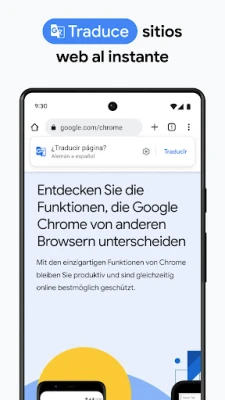 Descubre la forma más inteligente de explorar la red con Google Chrome. Sumérgete en un universo de información al instante, aprovechando el poder de la búsqueda de Google para encontrar respuestas rápidamente o dictar tus consultas sin usar las manos. Transforma tu cámara en una herramienta de descubrimiento con Google Lens, explorando visualmente el mundo que te rodea. Además, rompe barreras idiomáticas sin esfuerzo; con un solo toque, Google Traductor te permite navegar por sitios web completos en más de 130 idiomas, conectándote con contenido global como nunca antes.