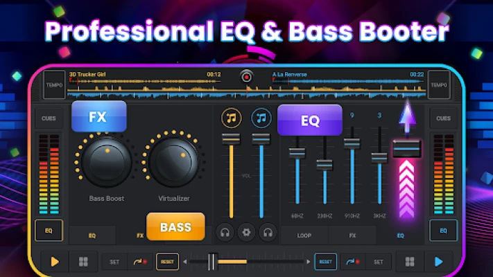 La versatilidad se une a la potencia en Mezclador de música DJ - Dj remezclar Pro. Con un diseño intuitivo y optimizado para cualquier pantalla, esta aplicación incorpora herramientas profesionales: desde 14 modos de bucle y un ajuste de EQ de cinco bandas hasta una mejora de graves que libera la energía pura de tu música. Conecta dos pistas sin interrupciones gracias a su crossfader dinámico y su función de sincronización de BPM de un clic, manteniendo el ritmo y el tono perfectos. Graba tus sesiones inspiradoras, importa tu biblioteca musical con facilidad y lleva tu estudio portátil a cualquier lugar. Mezclador de música DJ: DJ Estudio de mezcla es la plataforma definitiva para que novatos avancen y profesionales refinen su arte, convirtiendo tu teléfono en una consola avanzada de DJ Potenciador de bajo con Creador de ritmos, y brindándote un universo musical sin límites.