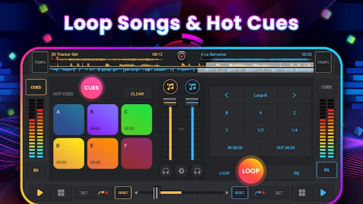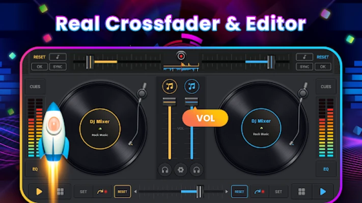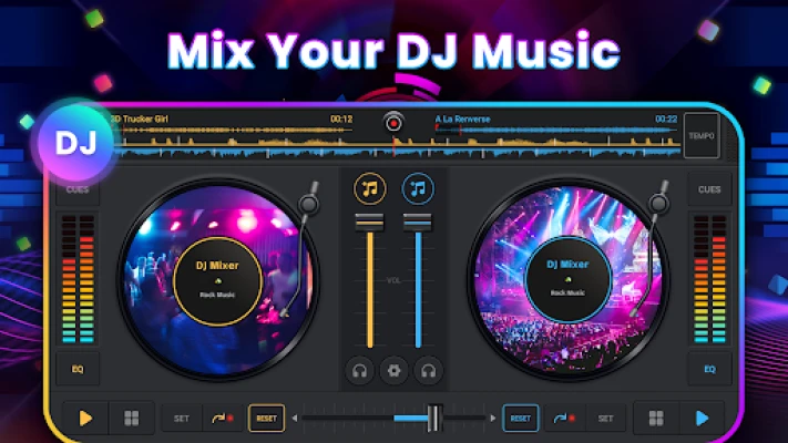 Mezclador de música DJ - DJ Estudio de remezclas es tu estudio virtual para mezclar y remezclar tu música favorita con resultados perfectos. Accede a funciones profesionales como sincronización BPM, EQ, bucles y crossfader. Crea pistas increíbles y muestra tu talento DJ donde quieras.