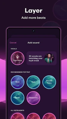 Crea música innovadora con más de 11 millones de sonidos de artistas globales. Desliza para explorar ritmos, instrumentos y géneros. Empieza con una voz profesional o tu propia grabación, construye tu tema capa a capa y comparte al instante, o exporta con calidad lista para lanzar.